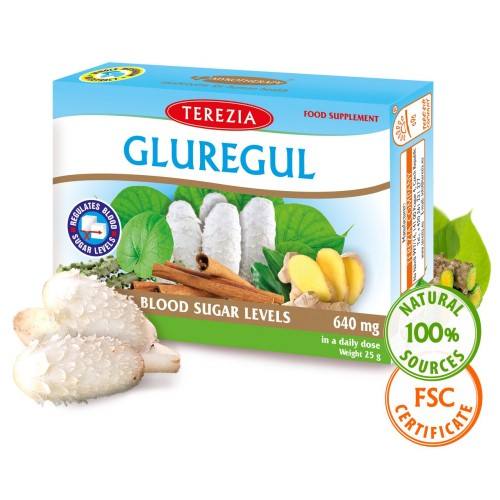 Gluregul je izdelek, ki ponuja edinstveno kombinacijo gobe Velika tintnica z dodatkom rastline guduči, ingverja in cimeta v prahu. Kombinacija naravno pripomore k uravnavanju ravni sladkorja v krvi in razstrupljevanju organizma.