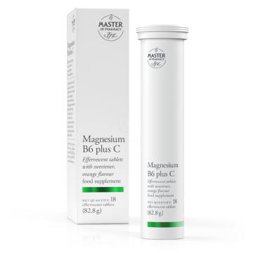 Master of Pharmacy Magnezij in B6 je prehransko dopolnilo z magnezijem, vitaminoma B6 in C. Šumeče tablete s sladilom, okus pomaranče.