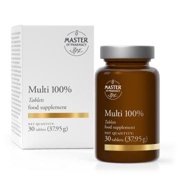 Prehransko dopolnilo Multi 100% so multivitaminske tablete za imunski sistem in zmanjšanje utrujenosti.