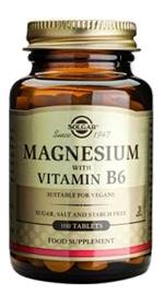Solgar Magnezij z Vitaminom B6, tablete vsebuje magnezij v obliki magnezijevega oksida in vitamin B6.