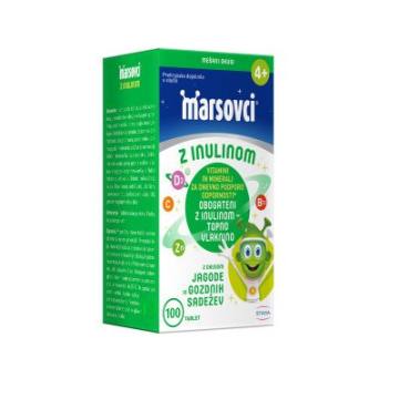Marsovci, žvečljive tablete z inulinom so kompleks vitaminov in mineralov za otroke, v obliki žvečilnih tablet, z okusom gozdnih sadežev. S sladili.