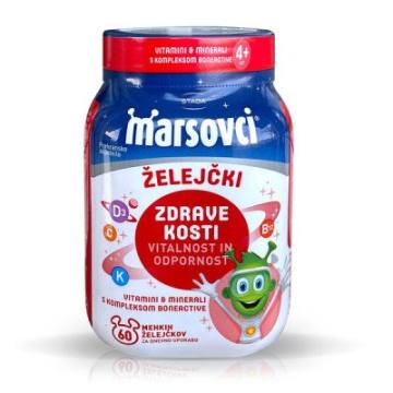 Marsovci želejčki s kompleksom BoneActive, vitaminom K in D, so okusni želejčki v obliki marsovcev.