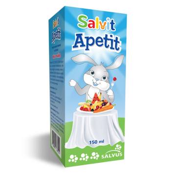 Salvit Apetit je prehransko dopolnilo v tekoči obliki s sladkorjem in okusom maline, namenjeno otrokom od 3. leta naprej, ki imajo pomanjkanje apetita in posledično nezadosten vnos hranil.