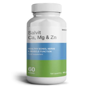 Prehransko dopolnilo Salvit Ca, Mg & Zn vsebuje tri bistvene minerale za ohranjanje zdravja kosti, mišic in živčevja.