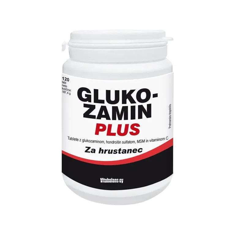 Glukozamin Plus vsebuje glukozamin, hondroitin sulfat, MSM organskega žvepla in vitamin C.