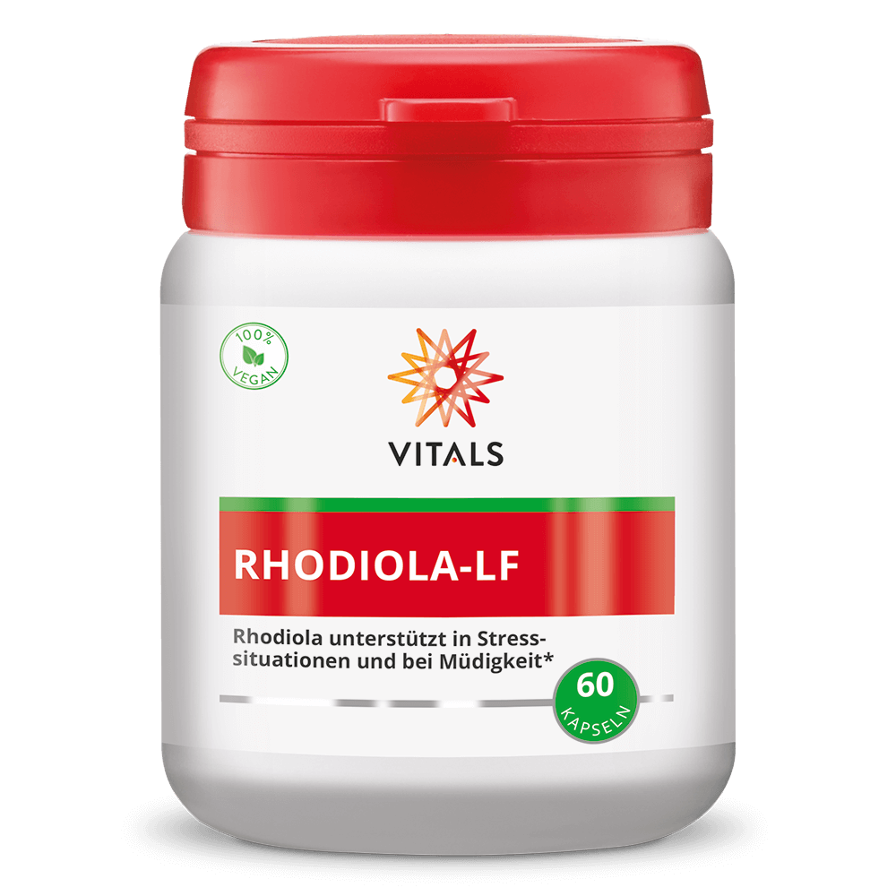 Uporaba rodiole kot zeliščnega pripravka sega že več kot 2000 let nazaj. Rodiola deluje kot adaptogen, kar pomeni, da lahko pomaga pri ohranjanju telesne odpornosti v stresnih situacijah ter pri premagovanju utrujenosti. Visokokakovosten izvleček Rhodiolife® v izdelku Rhodiola-LF Vitals vsebuje 5% rosavinov in 1,8% salidrozida, ki sta ključni učinkovini rodiole.