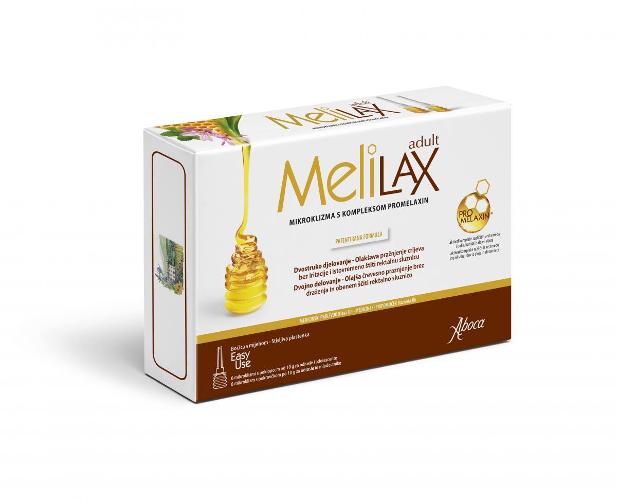 Melilax sproži odvajalno delovanje brez draženja in spodbudi fiziološki ter uravnotežen dražljaj za odvajanje blata. Poleg tega Melilax zaradi svojih lastnosti, ki posnemajo delovanje sluzi, in zaradi svoje viskoznosti zaščiti rektalno sluznico med odvajanjem blata, pri čemer posnema mazalno delovanje fiziološke sluzi.