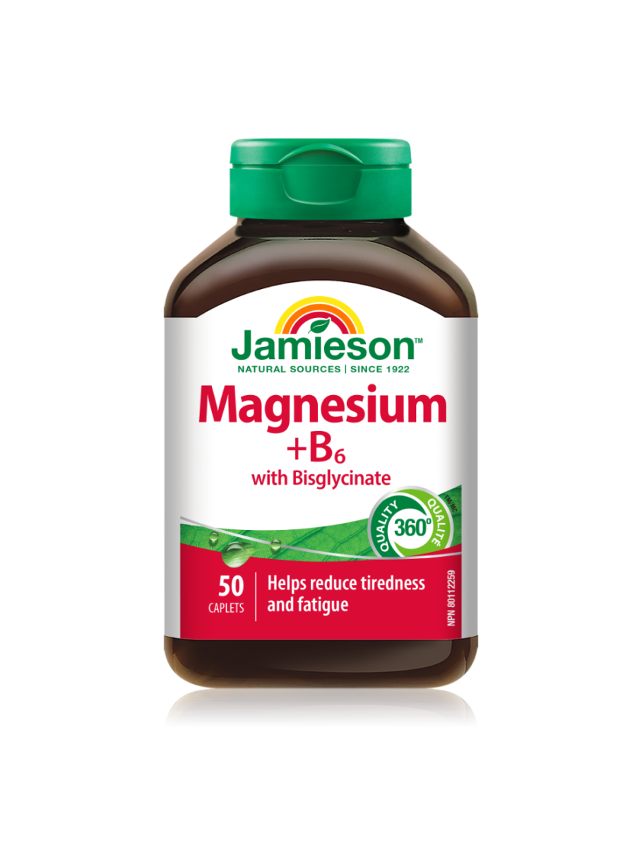 Jamieson Magnezij in B vitamini tablete so prehransko dopolnilo s kombinacijo magnezijevega bisglicinata in oksida ter vitaminov B6, B1 in B12.